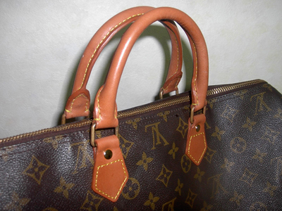 ルイ・ヴィトンのボストンバッグの革部分の全交換、持ち手周辺の画像です。